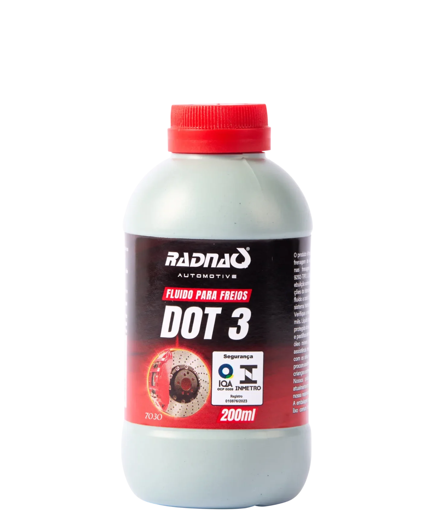 O Fluido para Freios DOT3 Radnaq foi especialmente desenvolvido para o sistema hidráulico de freios de veículos. Proporciona segurança nos momentos de frenagem. O produto atende as Normas NBR-9292 Tipo 3, SAE-J 1703 e FM/SS n° 116 DOT3, com ponto de ebulição acima de 205 °C.